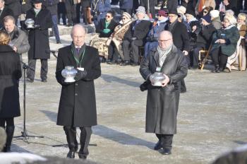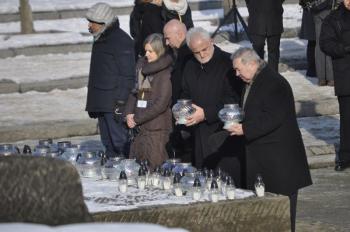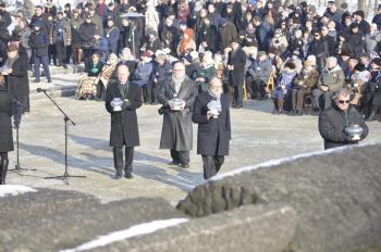 Druga część obchodów 72 rocznicy wyzwolenia obozu Auschwitz-Birkenau miała miejsce pod Pomnikiem Ofiar Obozu na terenie byłego Auschwitz II-Birkenau. Rabini oraz duchowni różnych wyznań chrześcijańskich wspólnie odczytali psalm 42 z Księgi Drugiej Psalmów, a uczestnicy ceremonii złożyli przy pomniku znicze upamiętniające ofiary Auschwitz.