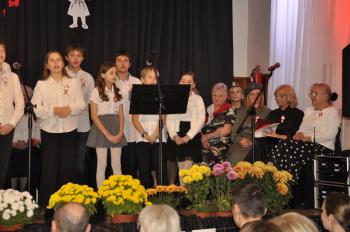 „Porębianie” zachwycili zgromadzonych pięknie przygotowanym programem artystycznym w którym pieśni patriotyczne przeplatały się z wątkami historycznymi. Najlepszym komentarzem do scenicznych prezentacji były długie i rzęsiste brawa po każdym z utworów.