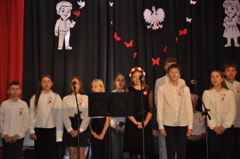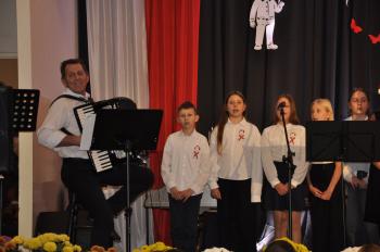 Była to już ósma edycja patriotycznego spektaklu „Niepodległość Pieśnią Opowiedziana”. Widowiskowy koncert, który po wspólnym odśpiewaniu Mazurka Dąbrowskiego i Roty rozpoczęła pieśń Jana Pietrzaka „Żeby Polska była Polską”, prowadziła była dyrektor Szkoły Podstawowej w Porębie Wielkiej - Małgorzata Bucka.