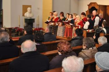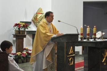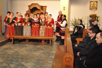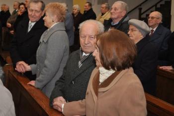 Zanim czcigodni Jubilaci zostali podjęci przez władze Gminy Oświęcim w grojeckim Domu Ludowym, uczestniczyli w uroczystej mszy św. odprawionej w pobliskim kościele przez ks. proboszcza Józefa Zborka. Duchowny złożył Jubilatom najserdeczniejsze życzenia kolejnych lat w zdrowiu i miłości, udzielił im także bożego błogosławieństwa.