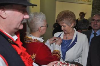 W progach Domu Ludowego w Grojcu małżonków z wieloletnim stażem serdecznie powitała kierownik oświęcimskiego Urzędu Stanu Cywilnego, Irena Paszko.