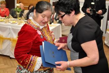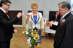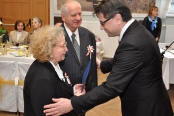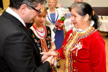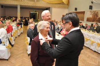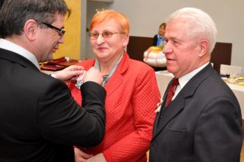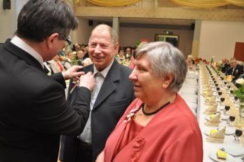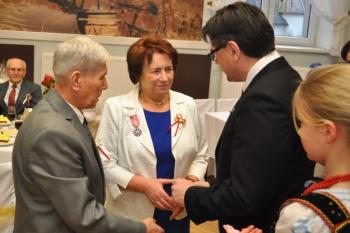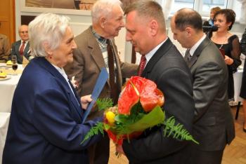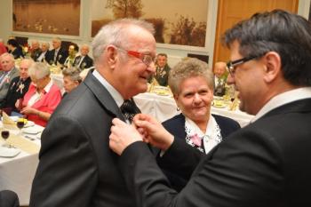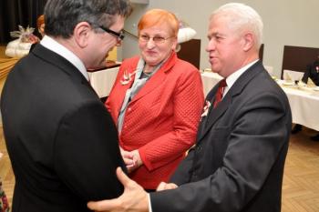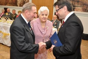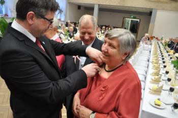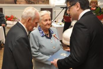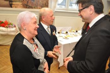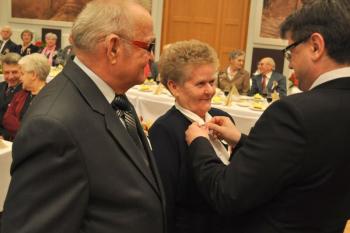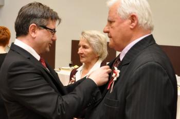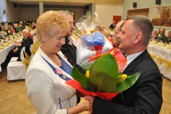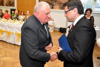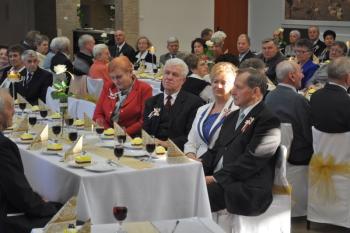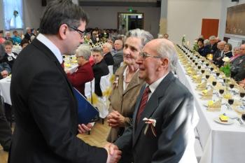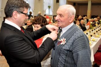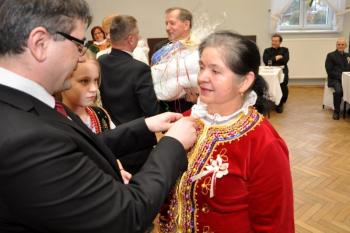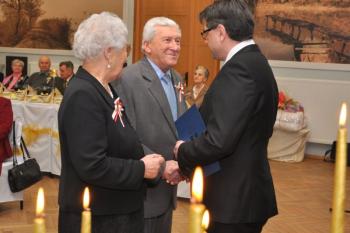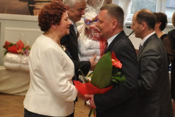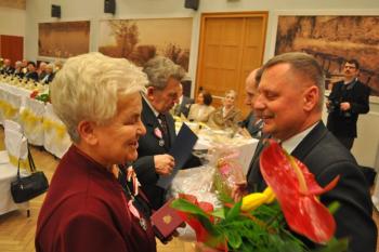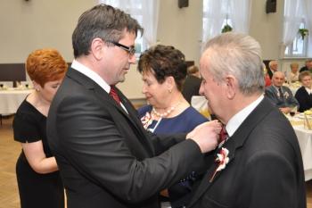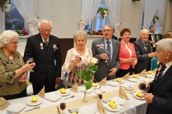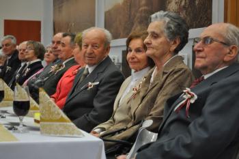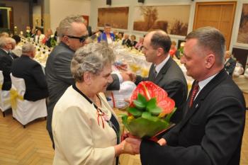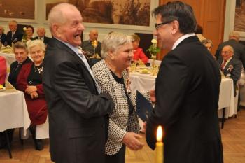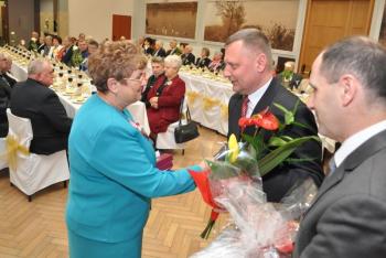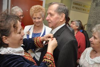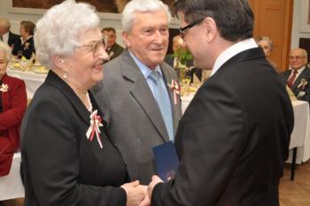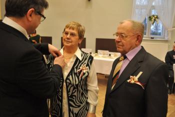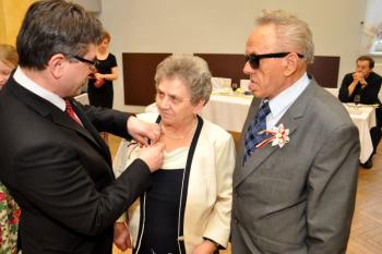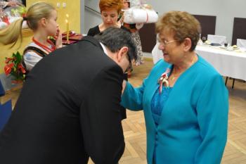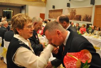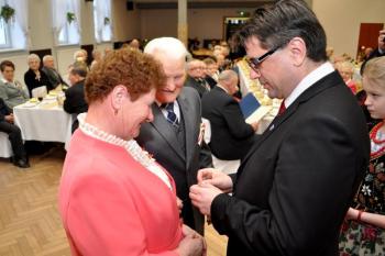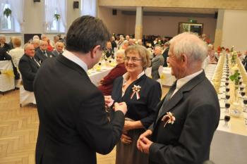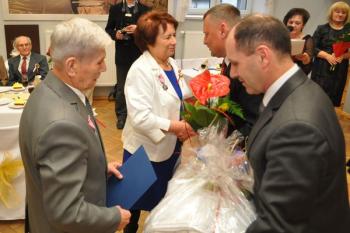 Później, w asyście kierownik USC, udekorował złotych Jubilatów medalami przyznanymi im przez prezydenta RP Bronisława Komorowskiego. Z życzeniami, listami gratulacyjnymi i upominkami pospieszyli przewodniczący rady gminy Piotr Śreniawski i zastępca wójta Mirosław Smolarek. O muzyczną oprawę tej części gali zadbał skrzypek Mirosław Kramarczyk.