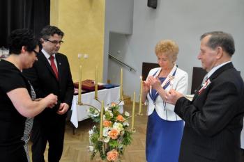 – Złote i Diamentowe Gody są w naszej polskiej tradycji obchodzone szczególnie uroczyście. Patrzymy na Was z podziwem i szacunkiem, chyląc przed Wami z pokorą głowy. Państwa obecność tu dowodzi, że wbrew wszelkim przeciwnościom losu dochowaliście przysięgi małżeńskiej – powiedziała pani Irena wyrażając nadzieję, że dzisiejsza uroczystość podkreśli znaczenie tego wyjątkowego jubileuszu w życiu małżonków.