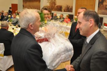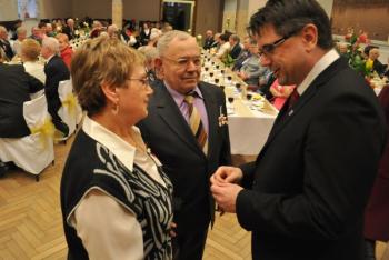 Następnie poprosiła wójta o zabranie głosu. I choć sternik naszej gminy miał przygotowaną na kartce okolicznościową przemowę, zrezygnował z tego ułatwienia, po czym prosto z głowy skierował do Jubilatów wyjątkowo ciepłe słowa, zbierając za nie burzę oklasków od zgromadzonych.