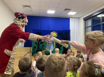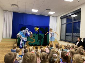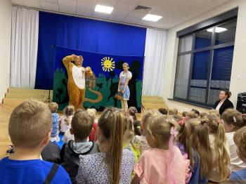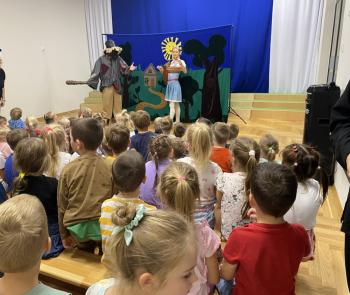 19 września gościliśmy aktorów teatru Skrzat. Przedszkolaki oglądały przedstawienie "Strach ma wielkie oczy". Na zakończenie spotkania dzieci nagrodziły aktorow gromkimi brawami.