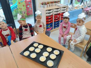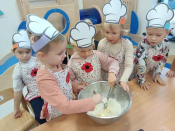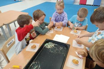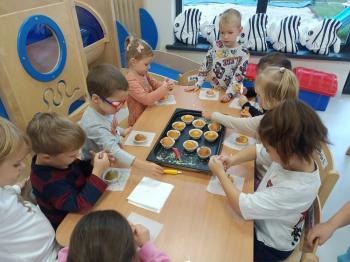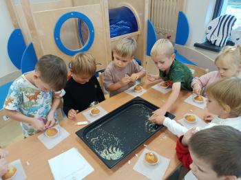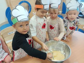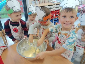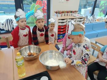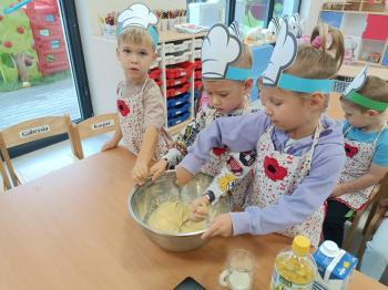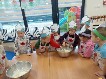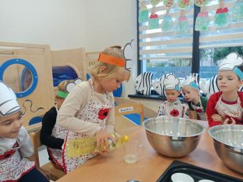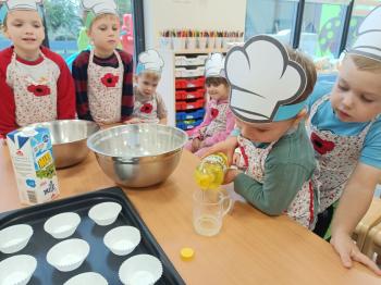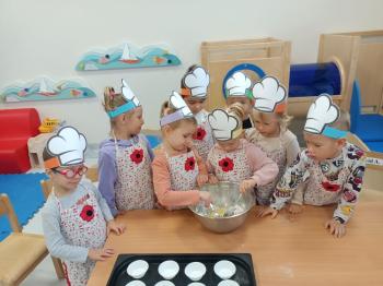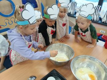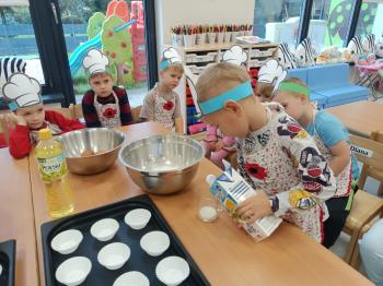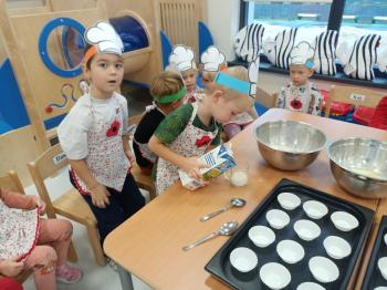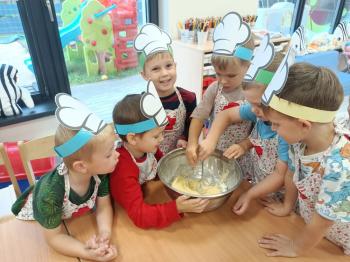Chłopaki z grupy Rybek obchodzili święto chłopaka. W tym dniu nie zabrakło ani dobrego humoru ani wesołych min. Dziewczynki złożyły życzenia oraz wręczyły upominki. Dodatkowo przedszkolaki wcielili się w role małych kucharzy przygotowując ciasto na pyszne babeczki. Dzieci chętnie łączyły ze sobą składniki, dodawały kolejne produkty. Po upieczeniu przez panią kucharkę ozdabiały lukrowymi pisakami oraz kolorową posypką. Wszystkim bardzo smakowała słodka niespodzianka.