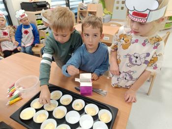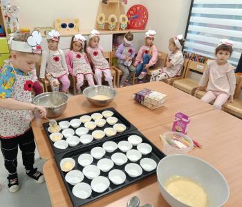 30 września Jeżyki świętowały Dzień Chłopaka. Dziewczynki złożyły chłopcom serdeczne życzenia oraz wręczyły im prezenty. Następnie wszyscy wspólnie piekli babeczki, co sprawiło dzieciom mnóstwo radości. Po upieczeniu każdy ozdabiał swoją babeczkę według własnego pomysłu.