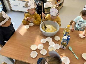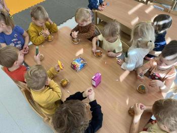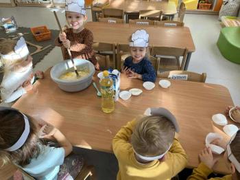 Dzień Dziewczynek w naszym przedszkolu! 10 października w naszym przedszkolu obchodziliśmy wyjątkowe święto – Dzień Dziewczynek! To był pełen radości i uśmiechu dzień. Z tej okazji dziewczynki otrzymały drobne upominki, które sprawiły im wiele radości. Nie zabrakło również wspólnej zabawy i słodkich przyjemności. Dzieci ponownie miały okazję przygotować pyszne babeczki, a następnie własnoręcznie je ozdabiać kolorowymi pisakami i posypkami. Każdy mógł wykazać się kreatywnością i stworzyć swoje małe, słodkie dzieło sztuki! Na zakończenie zajęć wszyscy z dumą zajadali swoje wypieki – smakowały wyśmienicie!