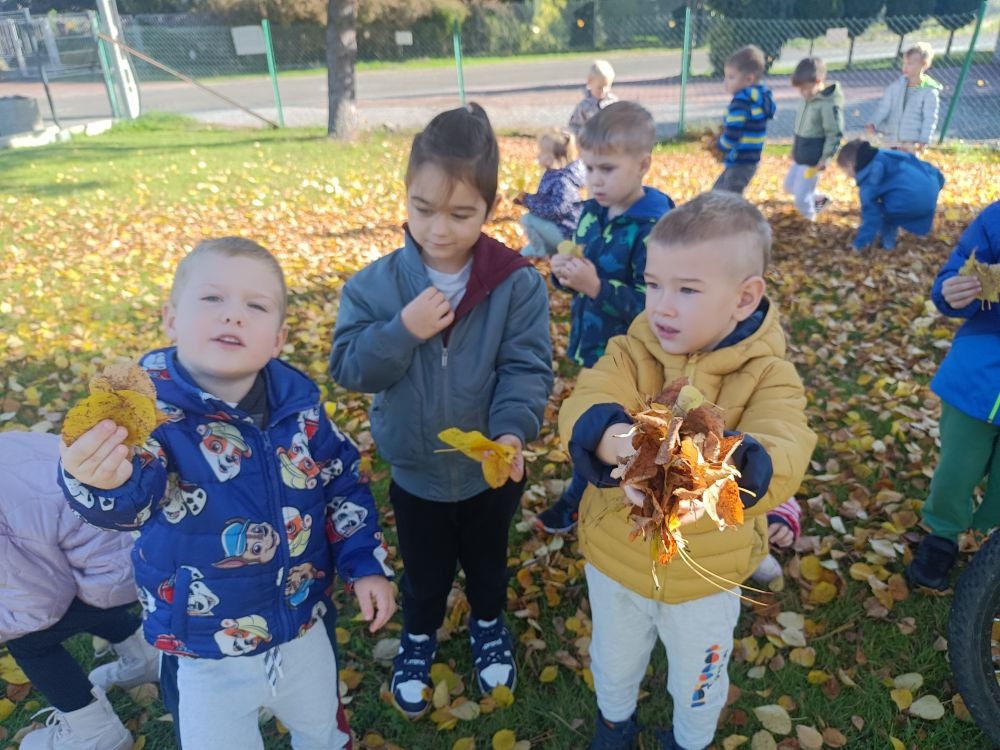 Dzieci z grupy Rybki podczas spaceru podziwiały kolory pięknej jesieni. W towarzystwie ciepłej pogody przedszkolaki spacerowały w okolicy naszego przedszkola. W trakcie pobytu na świeżym powietrzu opowiadały o charakterystycznych kolorach tej pory roku oraz zbierały kolorowe liście, które wzbogaciły kącik przyrody założony w sali przedszkolnej.