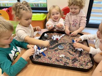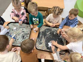 Podczas zajęć dzieci rozwijały koordynację wzrokowo-ruchową, małą motorykę oraz wyobraźnię przestrzenną, a jednocześnie doświadczały, jak wiele radości daje nauka poprzez zmysły.