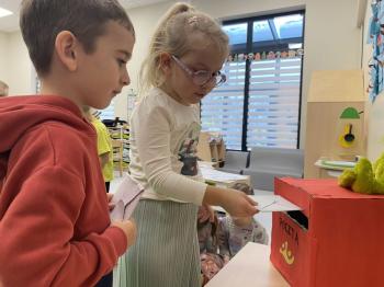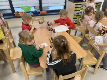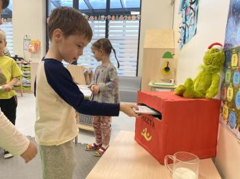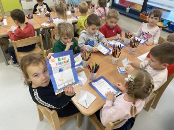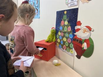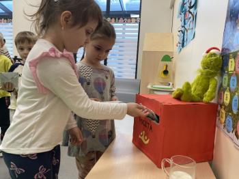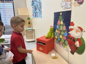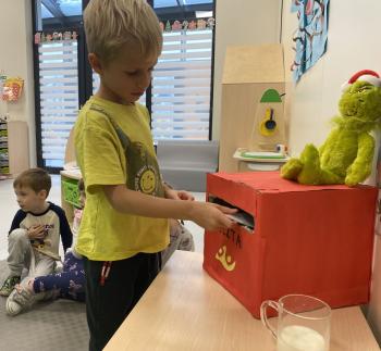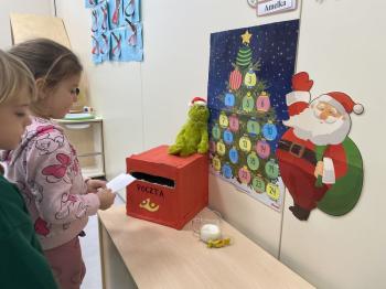 Dzieci przygotowały swoje listy do Świętego Mikołaja. Każdy stworzył własną kopertę oraz namalował w liście wymarzone prezenty. Następnie dzieci wrzuciły gotowe listy do specjalnej mikołajowej skrzynki. Na koniec poczęstowały Mikołaja małą słodkością i z niecierpliwością czekają, aż Mikołaj odwiedzi nasze przedszkole i zabierze wszystkie listy ze sobą.