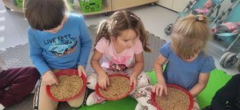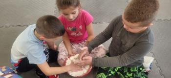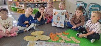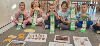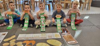 W ramach projektu „Poznaję, eksperymentuję, tworzę – podnoszenie jakości edukacji przedszkolnej w Przedszkolu Samorządowym w Brzezince” w module "Jestem śwaidomym obywatelem" w listopadzie i grudniu zrealizowano następujące tematy: szanuję tradycje, uczę się piec chleb, wytwarzać masło i twaróg, zalezności w świecie przyrody. Przedszkolaki poznały historyjkę "Od ziarenka do bochenka", dowiedziały się skąd się bierze mleko, jak wyrabiany jest twaróg i masło, poznały różne rodzaje pieczywa oraz produktów mlecznych, odszukiwały w piramidzie żywieniowej miejsce tych produktów. Ponadto dzieci zostały zapoznane z pojęciem przyroda, ekosystem, wzbogaciły wiadomości na temat ptaków.