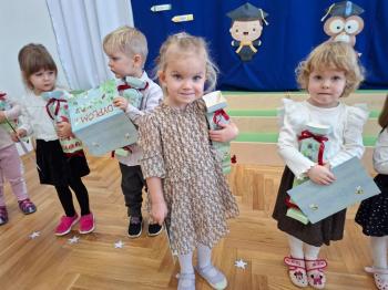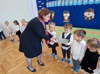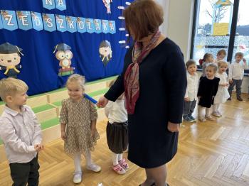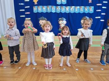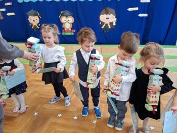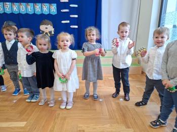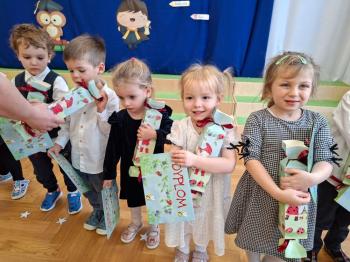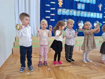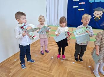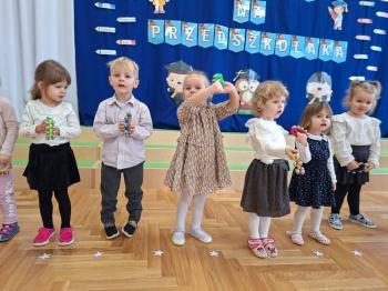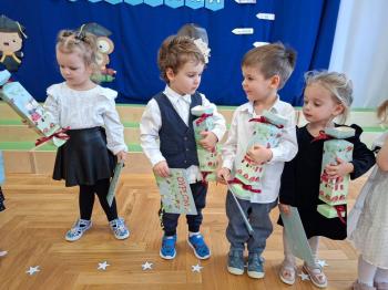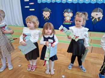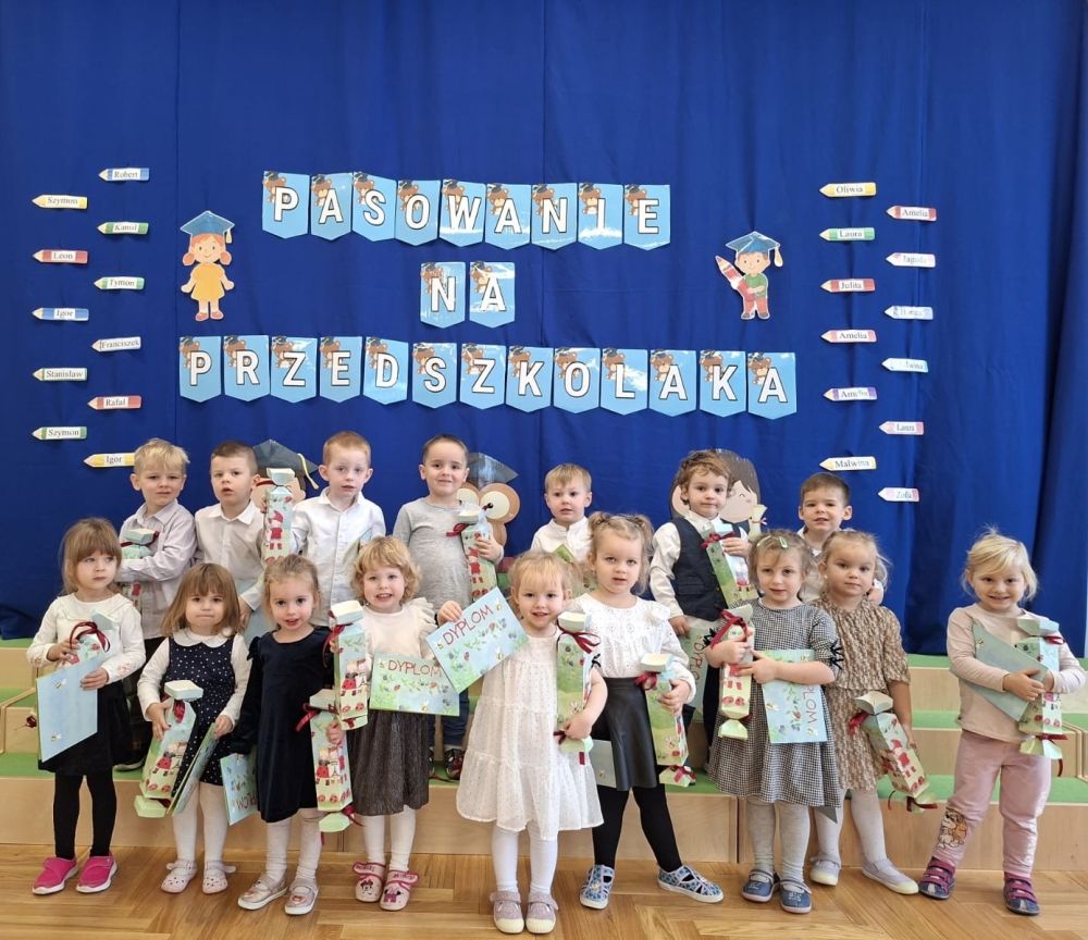 27 listopada w naszym przedszkolu miało miejsce pasowanie na przedszkolaka najmłodszych dzieci z grupy Biedronki. Ten wyjątkowy dzień był dla maluszków pierwszą okazją, by stanąć na scenie i zaprezentować się przed publicznością. Przedszkolaki z ogromnym zaangażowaniem zaśpiewały piosenki, powiedziały przygotowane wierszyki oraz zagrały na instrumentach. Po części artystycznej nastąpił najważniejszy moment – Pani Dyrektor dokonała uroczystego pasowania, symbolicznie wprowadzając dzieci do grona przedszkolaków. Każde dziecko otrzymało pamiątkowy dyplom oraz drobny upominek. To początek pięknej przedszkolnej przygody – życzymy Biedronkom samych wspaniałych chwil, odkryć i radosnych doświadczeń!