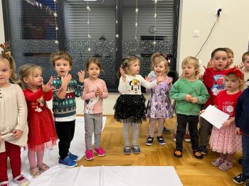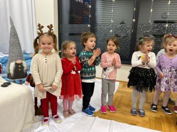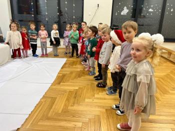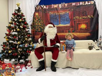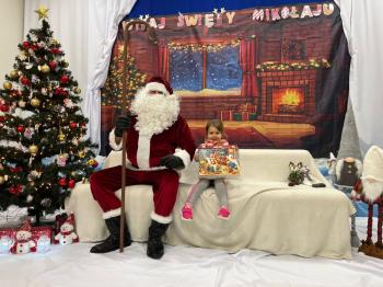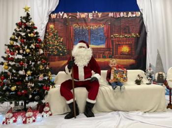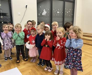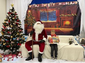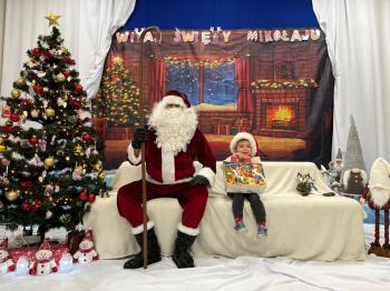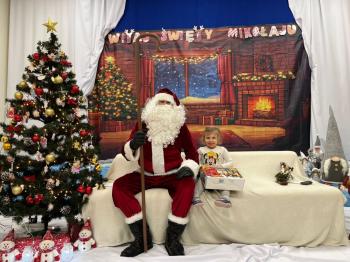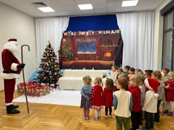 Gdy Mikołaj przekroczył próg sali, na twarzach przedszkolaków pojawił się szeroki uśmiech. Dzieci pięknie zaprezentowały przygotowany wierszyk oraz zaśpiewały świąteczną piosenkę, za co zostały pochwalone przez naszego wyjątkowego gościa. Po występach przyszedł czas na rozmowy z Mikołajem – maluchy chętnie odpowiadały na jego pytania, opowiadały o swoich marzeniach i świątecznych planach. Najbardziej wyczekiwanym momentem było oczywiście wręczenie prezentów. Każde dziecko otrzymało upominek, który wywołał wiele radości i emocji. Wspólne zdjęcia z Mikołajem uwieczniły te miłe chwile.