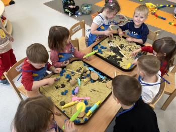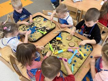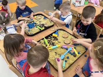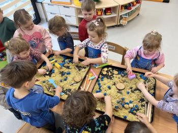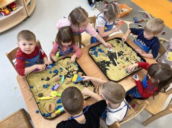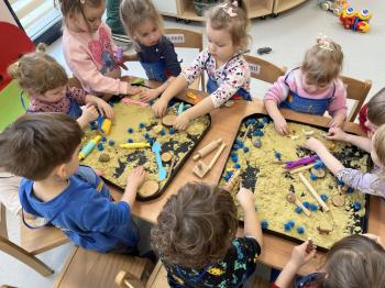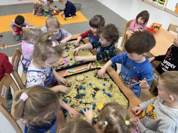 17 lutego w grupie Biedronek świętowaliśmy wyjątkowy dzień – Światowy Dzień Kota. Tego dnia do naszej sali zawitały urocze kotki, a dokładniej ich figurki, którymi dzieci mogły się zaopiekować niczym prawdziwymi pupilami. Podczas zajęć sensorycznych stworzyliśmy dla naszych małych przyjaciół przytulny, bezpieczny kącik z piasku kinetycznego. Dzieci z ogromnym zaangażowaniem ugniatały, przesypywały i formowały piasek, rozwijając przy tym sprawność dłoni oraz koordynację wzrokowo–ruchową. Powstawały miękkie legowiska, małe domki, a nawet „kocie ogródki”. Każde dziecko mogło wykazać się kreatywnością i troską, dbając o komfort swojego kotka. Nie zabrakło również elementów zabawy ruchowej i stymulacji sensorycznej. Wykorzystaliśmy miękkie, kolorowe pomponiki, które – jak wiadomo – koty uwielbiają! Podczas wspólnych aktywności rozmawialiśmy o tym, jak należy opiekować się zwierzętami, czego potrzebują koty oraz w jaki sposób możemy okazywać im troskę. Była to doskonała okazja do kształtowania postaw empatii i odpowiedzialności już od najmłodszych lat. Nasze Biedronki pokazały, że nawet najmniejsze rączki potrafią okazać wielką troskę i opiekuńczość. Z niecierpliwością czekamy na kolejne sensoryczne przygody!