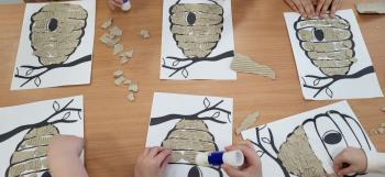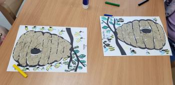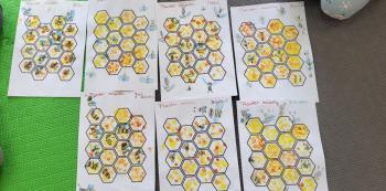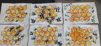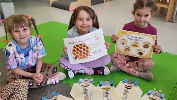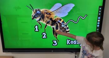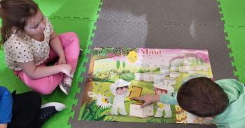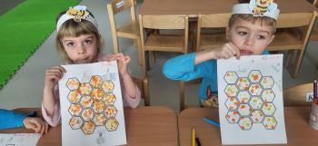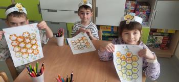 Temat pierwszy obejmował zagadnienia: budowa pszczoły, poznanie miejsca, gdzie żyje pszczoła murarka, skąd się bierze miód, zajęcia plastyczne „Plaster miodu”, rodzaje miodu, rośliny miododajne, wspólne wykonanie plakatów grupowych „Dbamy o pszczoły”.