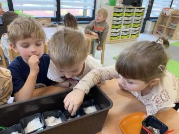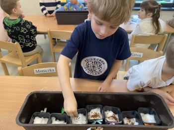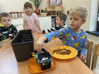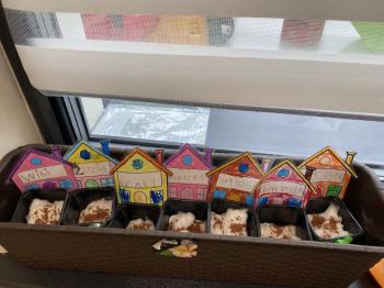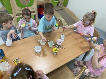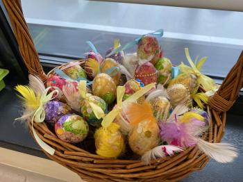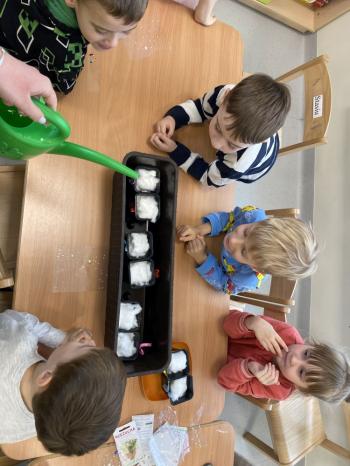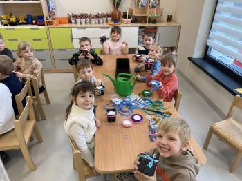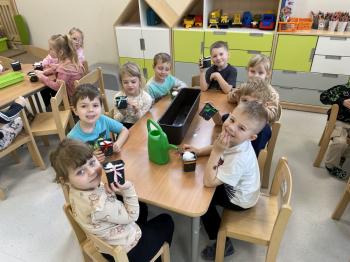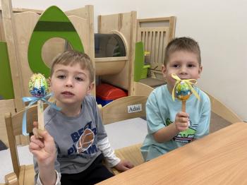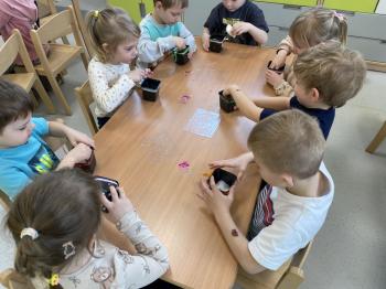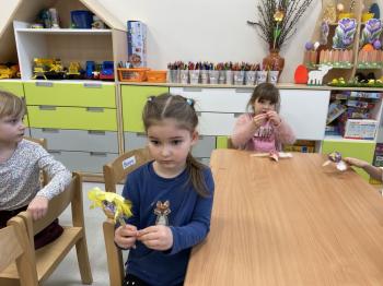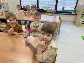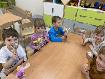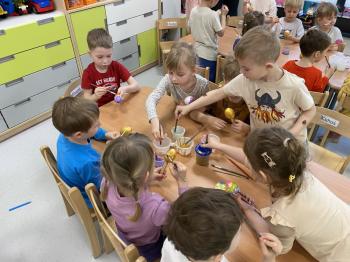 Grupa Jeżyki zasiała w sali rzeżuchę. Każde dziecko przygotowało swój własny „domek” oraz ozdobiło pojemnik według własnego pomysłu. Dzie wykonały również ozdobne pisanki ze styropianu, dekorując je wcześniej przygotowanymi materiałami.