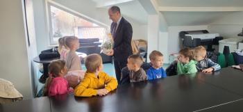 Dziękujemy Panu wójtowi Mirosławowi Smolarkowi za poświęcony przedszkolakom czas i upominki.
