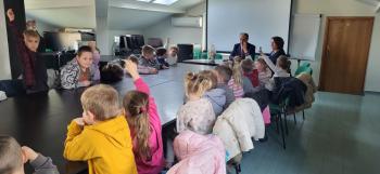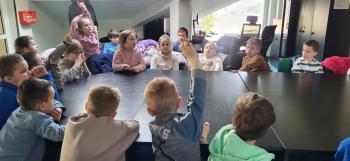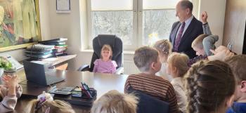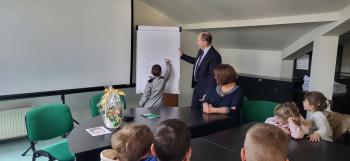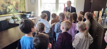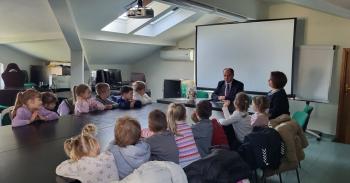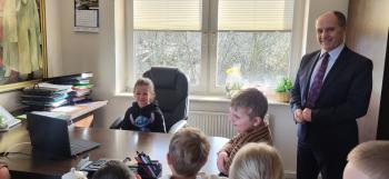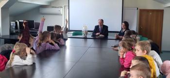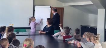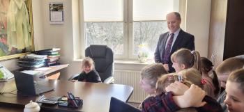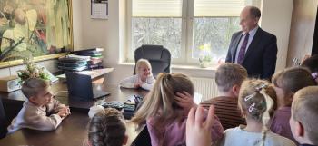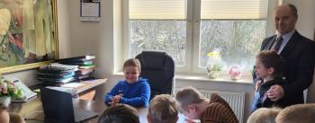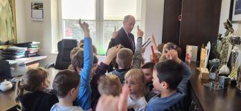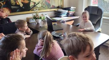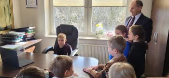1 kwietnia przedszkolaki, w ramach projektu „Poznaję, eksperymentuję, tworzę – podnoszenie jakości edukacji przedszkolnej w Przedszkolu Samorządowym w Brzezince”, odwiedziły Urząd Gminy w Oświęcimiu, gdzie wzięły udział w spotkaniu z panem wójtem Mirosławem Smolarkiem. Dzieci miały okazję zobaczyć salę, w której odbywają się posiedzenia Rady Gminy, dowiedzialy się, jakie sprawy załatwia się w Urzędzie Gminy. Pan wójt zaprosił przedszkolaki również do swojego gabinetu.