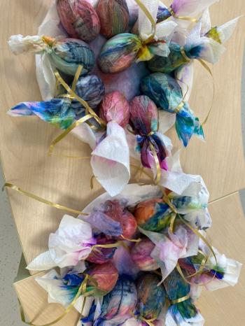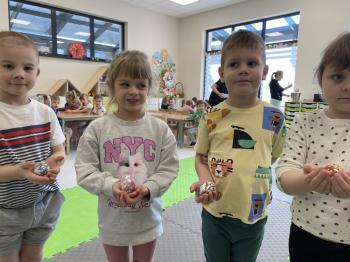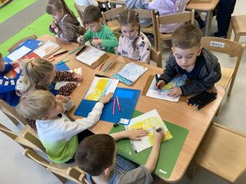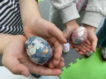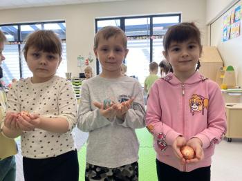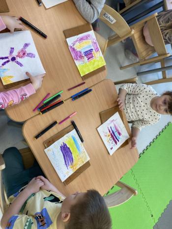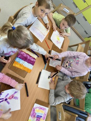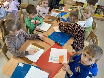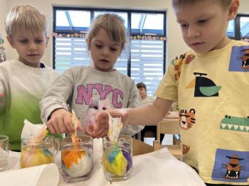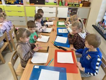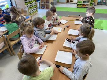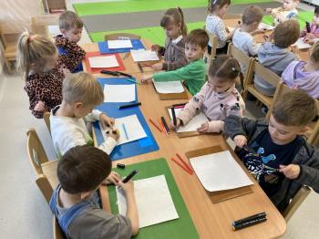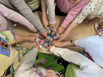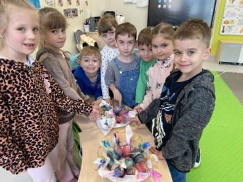 Przed Świętami Wielkanocnymi dzieci tworzyły pisanki do koszyczka.Wykorzystując kolorowe pisaki oraz ozdobne złotko, każde z nich mogło stworzyć coś naprawdę wyjątkowego. W przygotowanie swoich prac włożyły dużo pracy, dzięki czemu każda pisanka była niepowtarzalna.