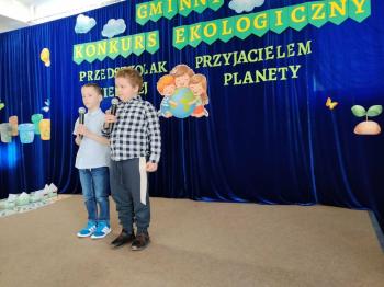 23 kwietnia w Przedszkolu Samorządowym we Włosienicy odbyła się XVIII edycja Gminnego Konkursu Ekologicznego pod tytułem ,,Przedszkolak Przyjacielem Zielonej Planety’’, pod patronatem honorowym Wójta Gminy Oświęcim. Nasze przedszkole reprezentowali Franciszek Burdyl i Jakub Paszek z grupy Kotki, którzy zaprezentowali piosenkę ekologiczną pt. ,,Ziemia choruje’’, a następnie doskonale poradzili sobie ze wszystkimi zadaniami konkursowymi.
