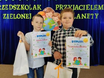 Wszyscy uczestnicy otrzymali pamiątkowe dyplomy oraz nagrody za udział w konkursie oraz nagrody dla swojej grupy przedszkolnej w postaci gry planszowej o tematyce ekologicznej.