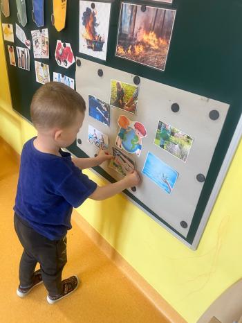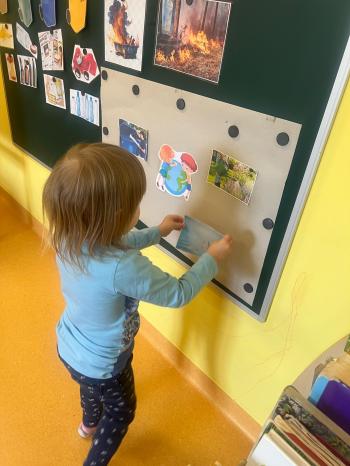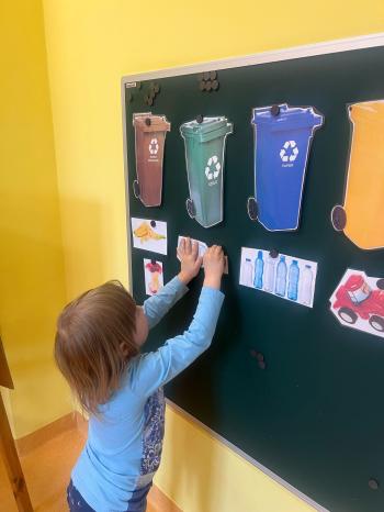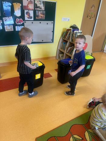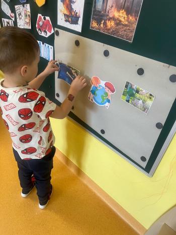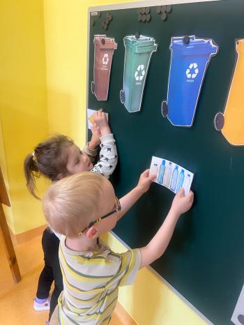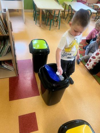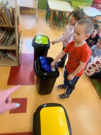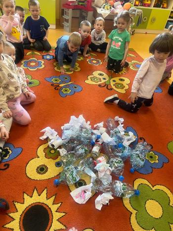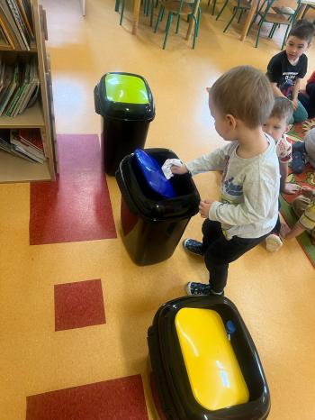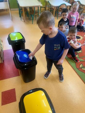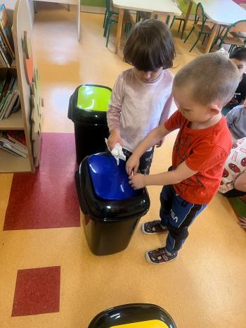 W ramach obchodów Dnia Ziemi, nasze najmłodsze przedszkolaki wzięły udział w zajęciach pt. „Kicia Kocia. Co z tymi śmieciami?”. Motylki wysłuchały bajki czytanej przez nauczyciela, uczyły się segregować śmieci oraz stworzyły wspólny plakat dotyczący dbaniu o planetę Ziemię