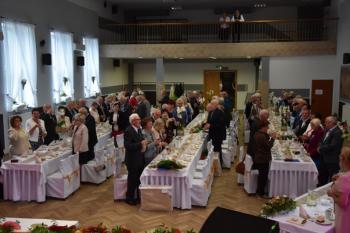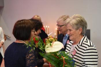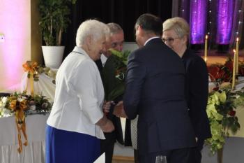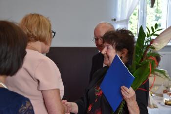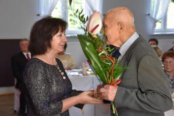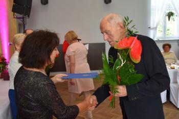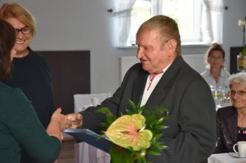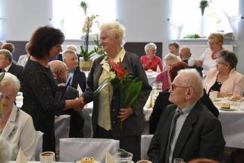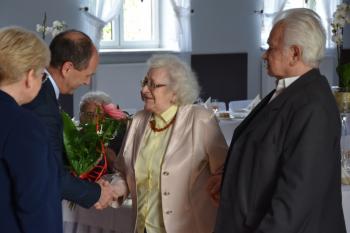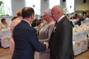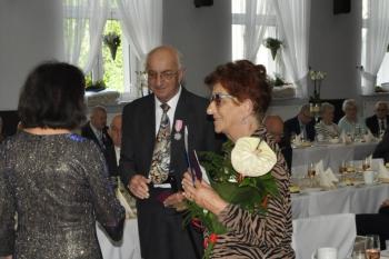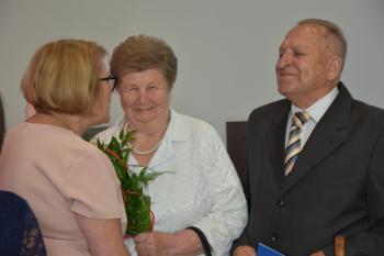 Życzenia i upominki jako pierwsze odebrały małżeńskie pary, które przeżyły w razem 60 lat.