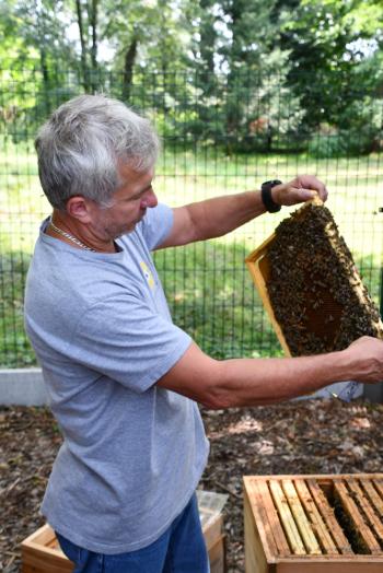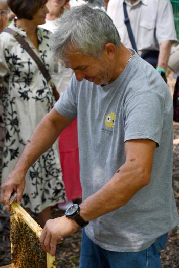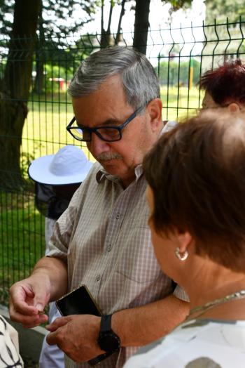 Prezes Koła Pszczelarzy Ziemi Oświęcimskiej Bogusław Raj ciekawie opowiadał o pszczołach i pszczelarstwie, niejednokrotnie zaskakując swoją wiedzą uczestników. Sami słuchacze bardzo entuzjastycznie zadawali pytania prowadzącemu.
