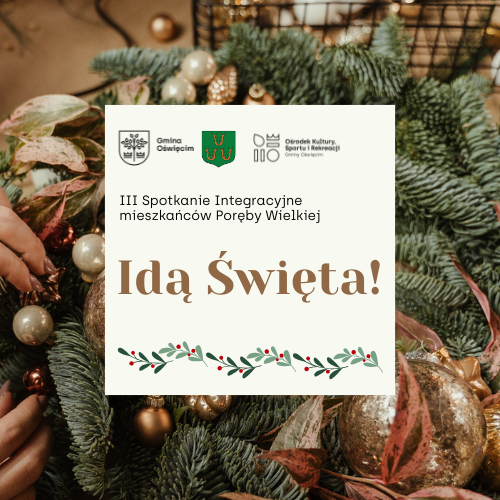 Sołtys i Rada Sołecka Poręby Wielkiej oraz Ośrodek Kultury, Sportu i Rekreacji Gminy Oświęcim serdecznie zapraszają na III Spotkanie Integracyjne, które odbędzie się 12 grudnia 2025 r. o godz. 17:00 w Domu Ludowym w Porębie Wielkiej.